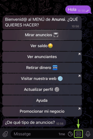 Con tu código de acceso (intransferible), que te permitirá entrar en el bot de Telegram @Anunsibot y empezar a mirar anuncios.
